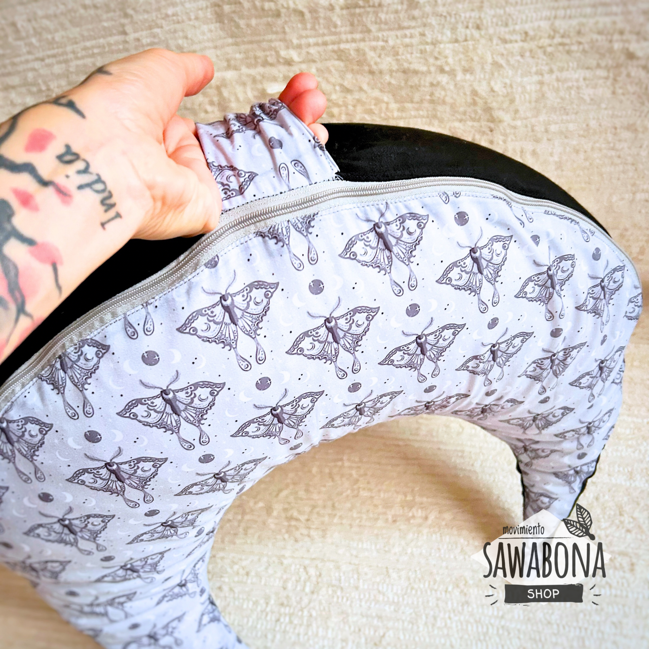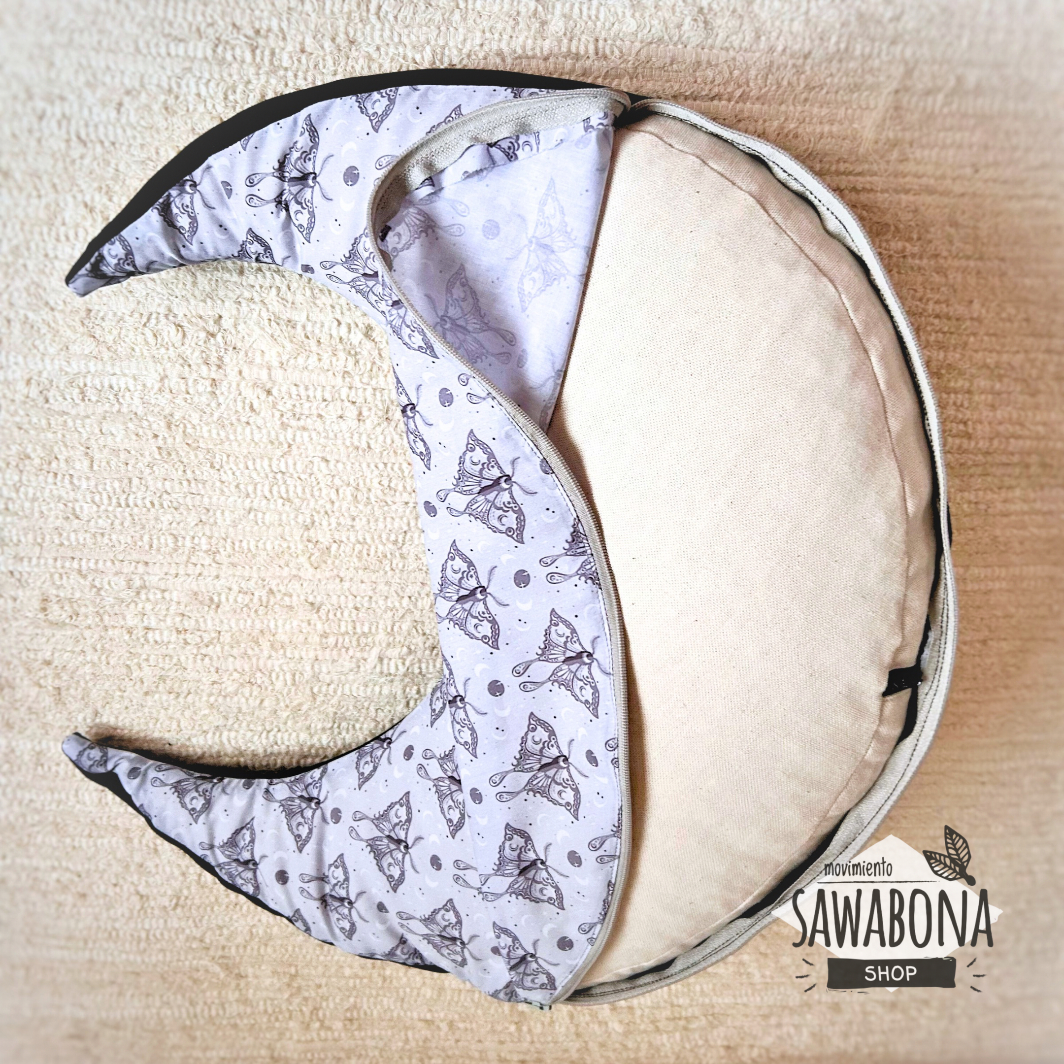 Altura regulable: su funda interior está rellena de cáscara de espelta ecológica, un material natural que se adapta a tu cuerpo. Puedes vaciarla parcialmente si tienes una buena apertura de cadera o prefieres una base más baja.